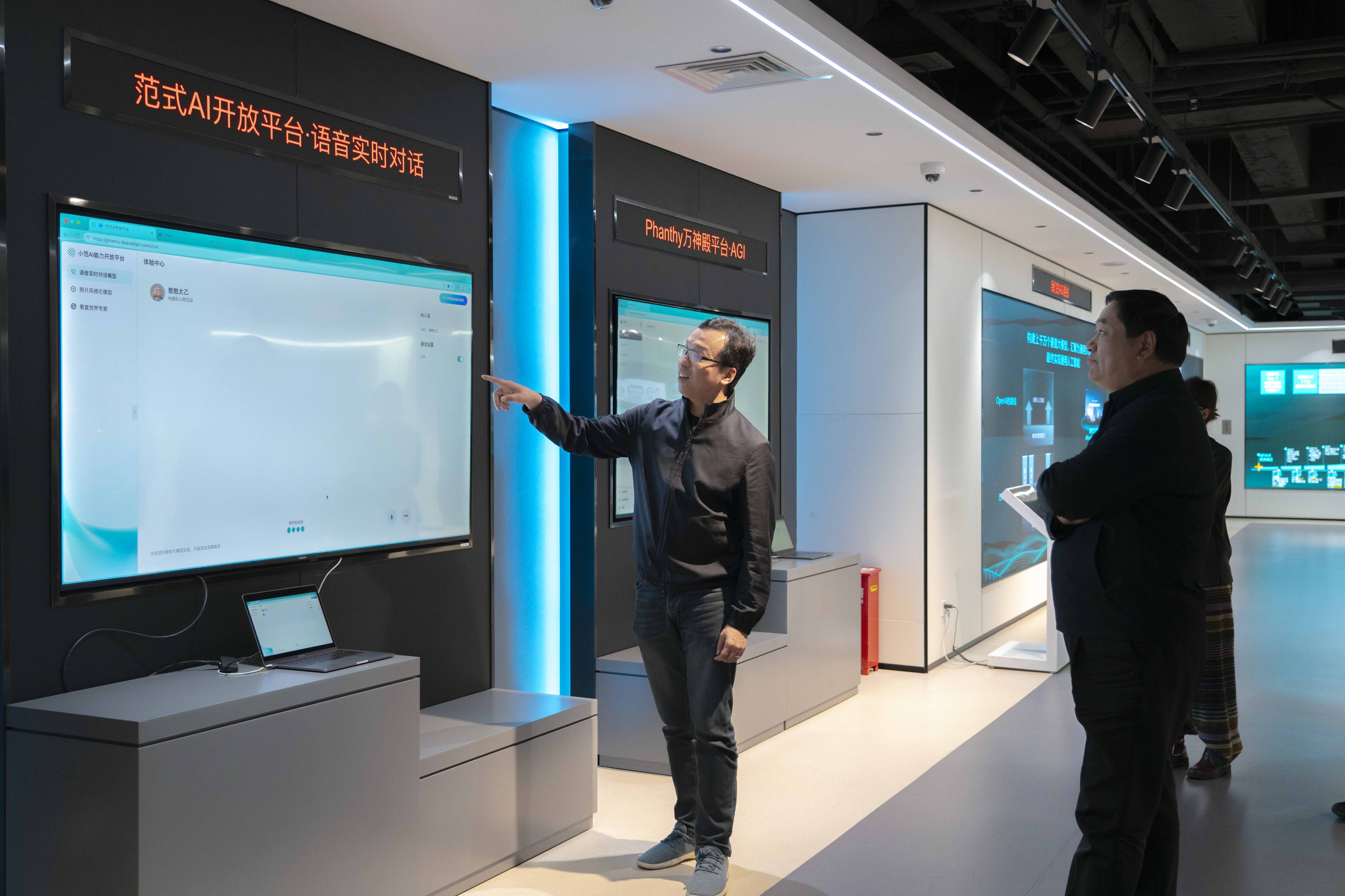 今年两会,人工智能成为热议话题,戴文渊作为全国工商联人工智能委员会主席团成员兼秘书长,带着对行业发展的思考,与到访的王兆成副部长一行进行了深入交流。参观过程中,一行人驻足在Phanthy(万神殿)展区许久,戴文渊详细介绍了范式“AI Agent+世界模型”的技术路径——通过“通用能力+专业智能”的协同,构建面向真实世界的通用人工智能平台。王兆成对这一技术方向所指向的未来表示期待。在专设的“全国工商联人工智能委员会展示区”,戴文渊重点阐述了委员会在团结引领AI企业、推动产业链协同、促进产学研用融合等方面的关键作用。座谈会上,双方围绕人工智能发展展开热烈讨论。王兆成对范式集团在人工智能领域的创新成果和委员会工作表示肯定,希望范式继续发挥龙头引领作用,带动更多企业融入人工智能产业生态,共同提升我国人工智能产业的整体竞争力和创新活力。范式集团表示,将认真贯彻落实2026年《政府工作报告》对人工智能的部署要求,切实履行秘书长单位职责,团结带领人工智能领域民营企业,深度融入国家战略,全力推动技术创新与产业融合,在“打造智能经济新形态”的时代命题中贡献范式力量。范式集团(港交所代码: 6682)是全球领先的通用人工智能科技公司,以"AI for everyone"为使命,致力于用"AI agent+世界模型"的技术路线赋能千行万业。公司成立于2014年,于2025年实现集团化,下设企业服务(第四范式)、大模型与AGI(万神殿)、消费电子(范式领航)、智慧能源(范式方舟)、智慧体育(范式网动)等业务板块。截至目前,公司已在金融、零售、医疗等领域成功落地超10000+个AI应用,始终致力于推动AI普惠,助力企业实现可持续增长。
